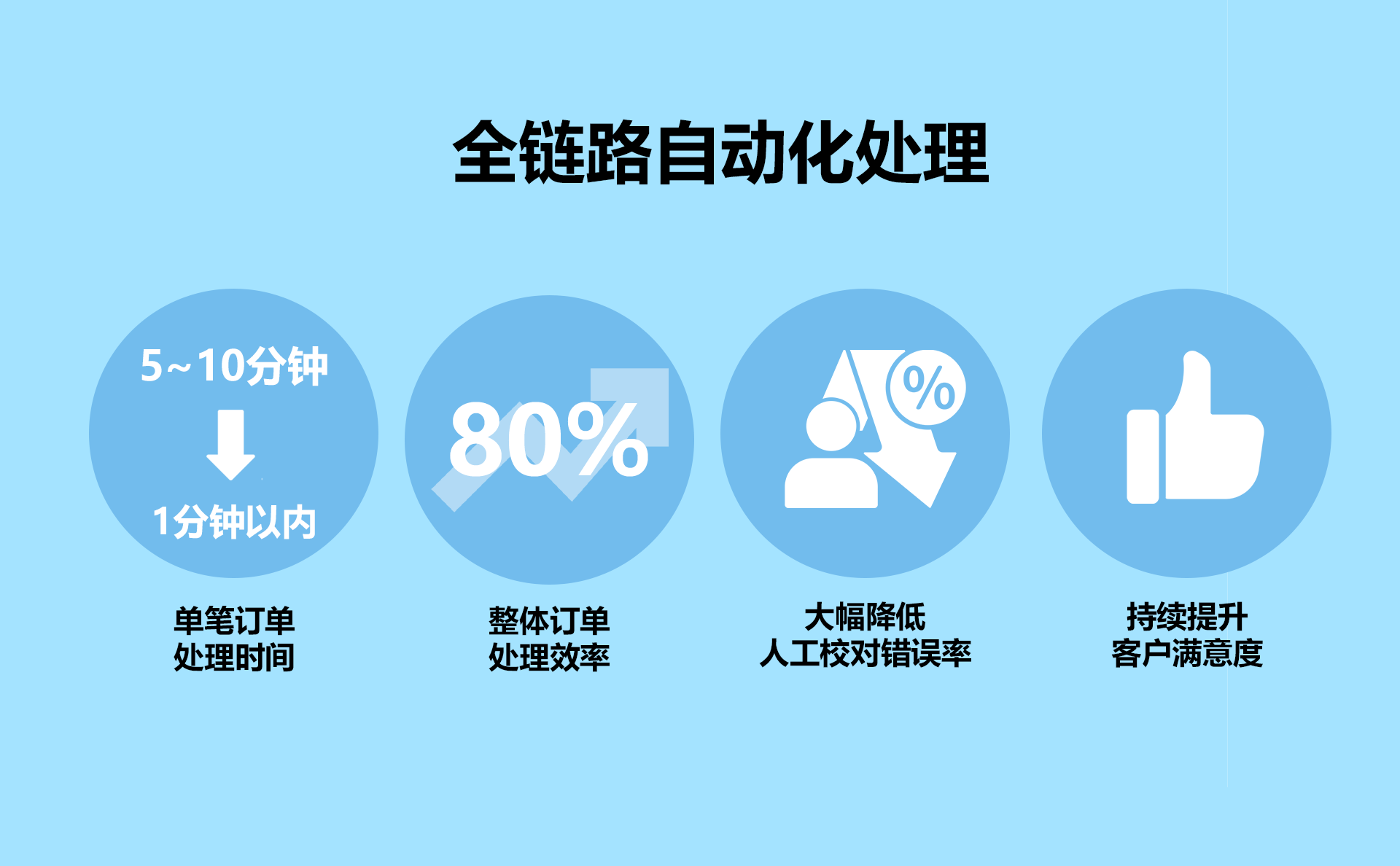 全鏈路自動化處理取代了人工操作,單筆訂單處理時間從原來的5–10分鐘壓縮至1分鐘以內,整體訂單處理效率提升了80%;在顯著節約人力成本的同時,大幅降低了人工校對錯誤率。此外,客戶響應時間明顯縮短,客戶滿意度持續提升,進一步鞏固了企業的市場競爭力。