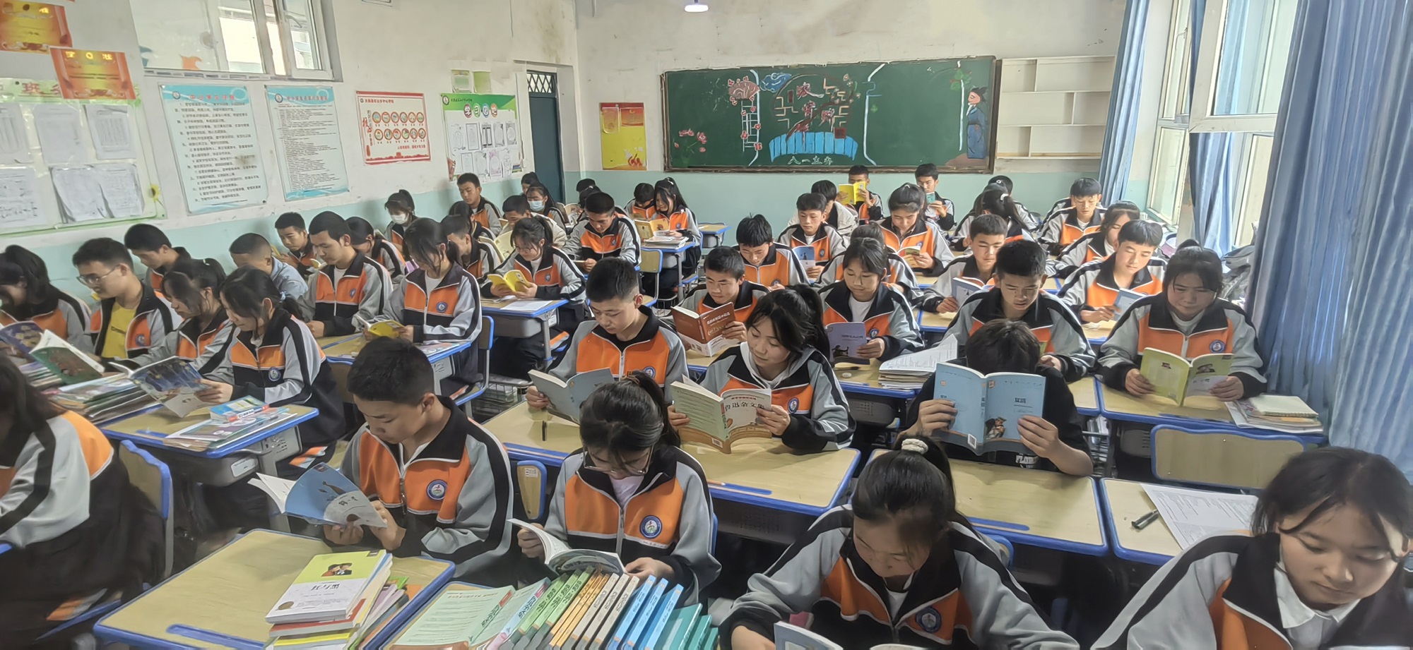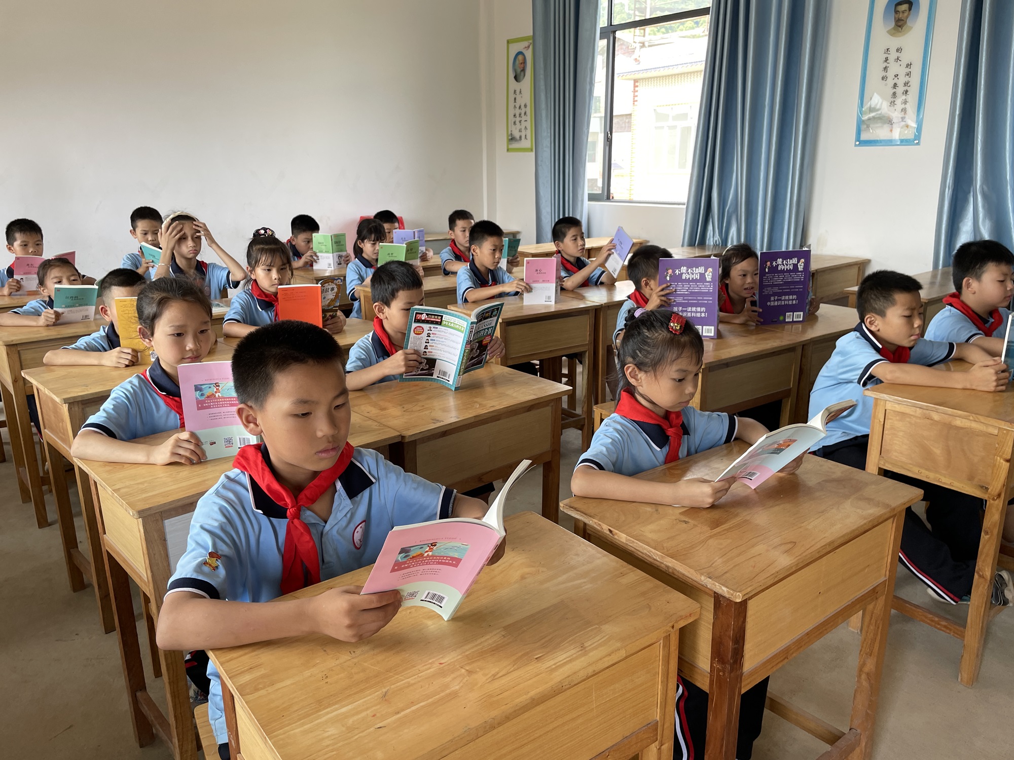 青海省西寧市大通縣石山鄉中心學校的學生們閱讀柯尼卡美能達捐贈的書籍