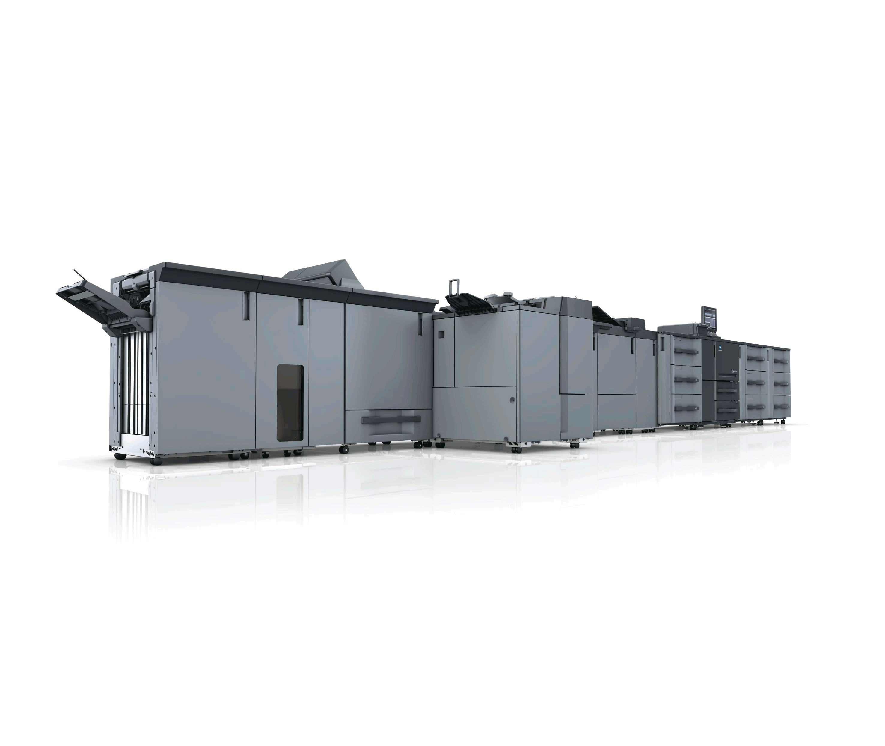 - 高品質來自于先進的功能:實時去卷校正功能(* 選購件)、混合去卷調整功能(* 選購件)、帶式轉印、高精度正反對位調整功能
