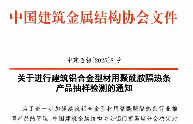 為了進一步加強建筑鋁合金型材用聚酰胺隔熱條產品的管理,中國建筑金屬結構協會鋁門窗幕墻分會決定對已推... [正文][評論]