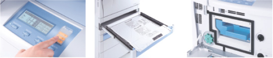 機身設計緊湊,高度為1150 毫米,安裝面積為0.35 平方米,可使用從14 × 17英寸至8 × 10英寸的五種尺寸的打印膠片。另外,還支持最多3個供片盒的選配功能,可根據需要放置膠片。此外還配備了帶有6個分片槽的分片器,使打印后的分片工作變得更為簡便。
