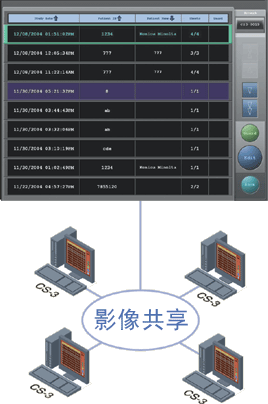 系統(tǒng)流程演示 影像共享功能(可選) 該功能可使影像在同一網(wǎng)絡(luò)內(nèi)的多個控制臺間共享。可以從遠(yuǎn)處訪問另外一臺CS-2/CS-3型控制臺內(nèi)的影像,進行瀏覽和編輯。