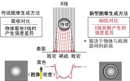 對于X線干涉產生的相位對比,以往觀點認為利用醫用X線管攝影時,通過把被攝物體放于遠離X線檢測器的位置而形成放大曝光,會導致圖像形狀模糊,消除相位對比。