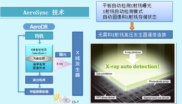 “AeroSync”自動曝光檢測功能 “AeroSync”,由柯尼卡美能達公司研制的一種新的X射線曝光同步采集技術。 在無需和X光機高壓發生器相通信連接的情況下,自動檢測X射線曝光,自動采集X射線圖像信號并進行存儲、傳輸。 使AeroDR 適用于移動X光機和常規固定式X光機的數字化升級。