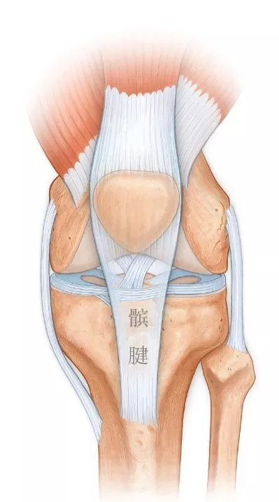 髕腱是指連接髕骨與脛骨之間的韌帶。近端大部分附著于髕骨下緣,遠端附著于脛骨粗隆表面。
