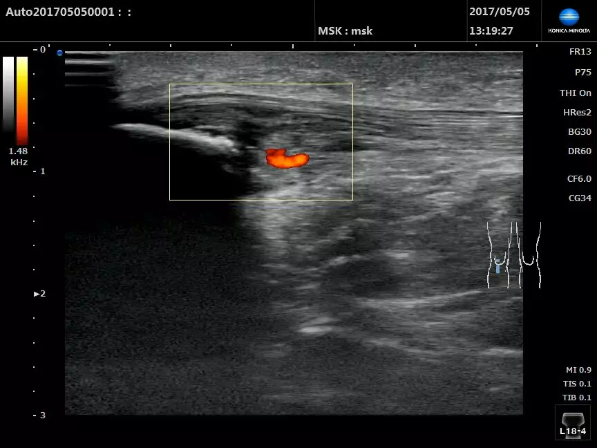如病變部位除能看到相關二維圖像改變以外,還能探測到彩色或能量多普勒血流信號時,則提示該病變處于炎癥活動期,往往多普勒信號多少與炎癥充血程度呈正相關,與患者的疼痛感有密切關聯。
