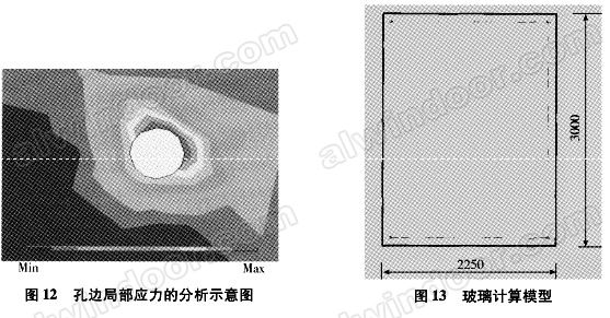 目前點式幕墻的玻璃面板按照《玻璃幕墻工程技術(shù)規(guī)范》JGJ102一2003僅對玻璃進 行大面強度計算,忽略了孔邊局部應(yīng)力的分析。
