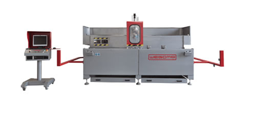 數控雙頭切割鋸SQJ2-650F適用于各種鋁型材的復合角下料加工;采用數字PLC多軸控制,完成5軸控制;采用鋸片自下而上的切割方式,可對所有切割使用外測量方式;鋸切角度可水平轉動,同時也可垂直轉動,完成復雜角度的切割;采用硬質合金鋸片,并設有自動噴霧冷卻系統;設有安全鋸罩等安全操作裝置,保護操作者安全。適用于各種門窗型材的22.5°~135°之間任意角度下料切割。