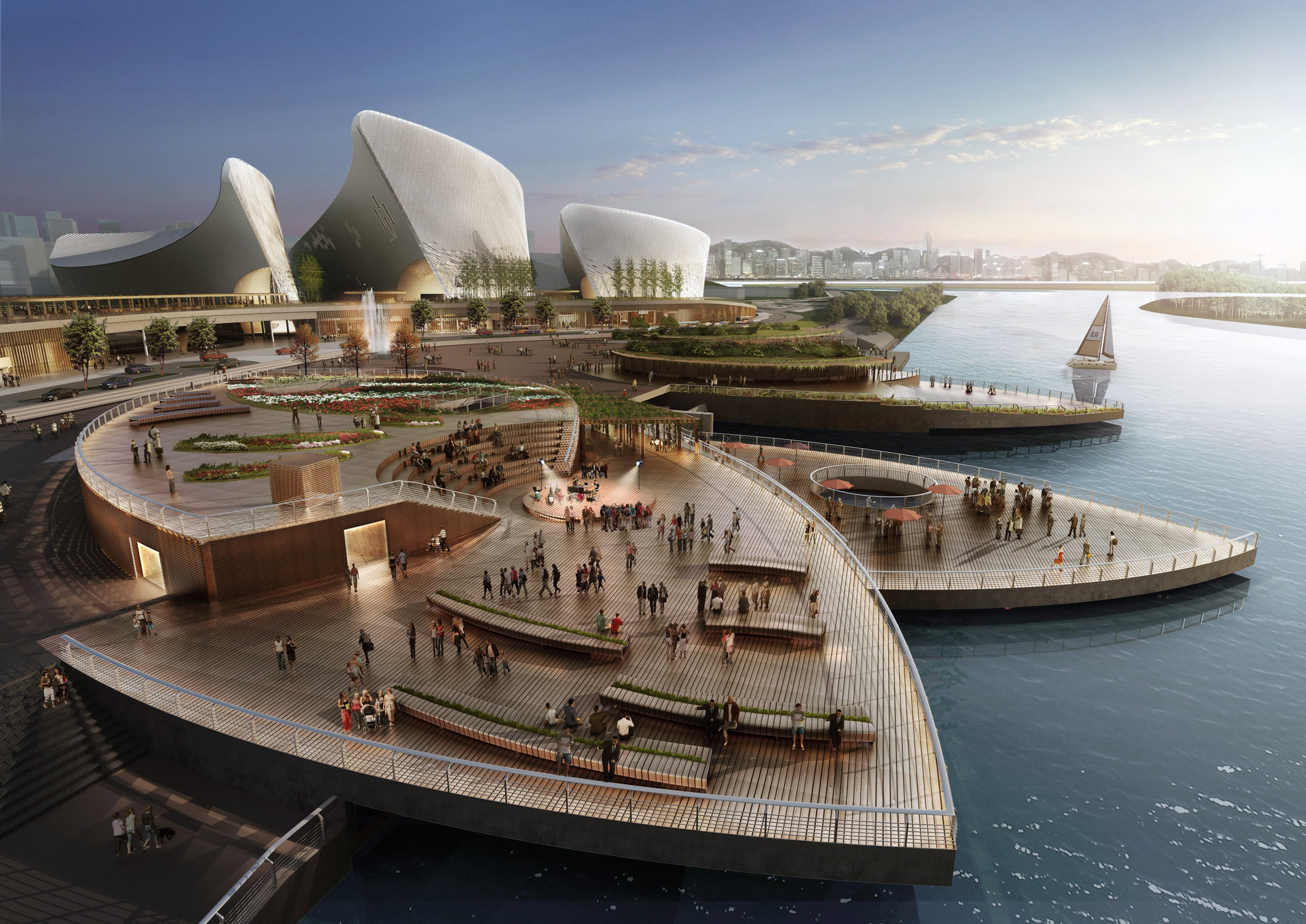 該項目由多功能戲劇廳、歌劇院、音樂廳、藝術博物館、影視中心等5個功能性建筑和一層中央文化大廳組成,海峽藝術