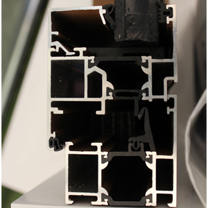 斷熱型材,又稱斷熱鋁合金型材:將鋁合金型材分成二部分,內側的型材部分起主要支撐作用和安裝配件;外側的型材部分主要組成向外閉合,擔負外側玻璃密封、金屬(詞條“金屬”由行業大百科提供)護板和安裝配件等的作用。兩部分型材之間用熱導率(詞條“熱導率”由行業大百科提供)很低的材料固定連接,起到熱流阻斷作用。即采用斷熱鋁合金(詞條“合金”由行業大百科提供)型材,使在室內外有溫差的情況下,熱量在鋁合金型材的傳遞中不形成通路,阻止熱量的傳導。從下圖可以看出明顯的斷熱效果:
