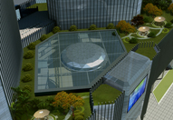 生態公共空間:連接兩座塔樓的抬升裙房下方,形成 65 米跨度無柱公共空間,幕墻設計結合垂直綠化,打造開放城市花園。