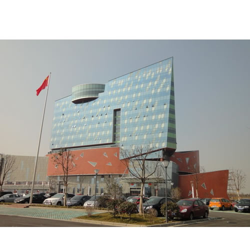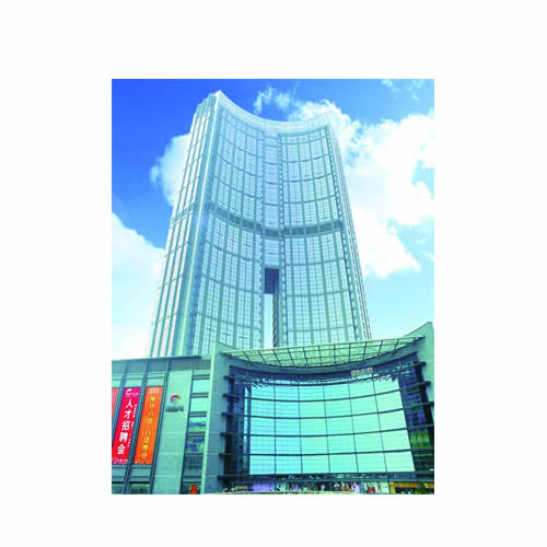 該項目(圖1、圖2)是由1棟7層高不規則多邊形臨街主樓及1棟4層高矩形背街附屬用房半包圍式的建筑群組成。建筑面積約為39017.76平方米;建筑幕墻工程量合計約28000 ㎡,建筑幕墻工程主要為構件式玻璃幕墻、鋁合金裝飾格柵(詞條“格柵”由行業大百科提供)、鋁板幕墻、鋁板雨棚等組成。幕墻最大標高(詞條“標高”由行業大百科提供):40.00米。該項目建筑結構類型為框架式剪力墻結構,基本風壓(詞條“基本風壓”由行業大百科提供)為0.3KN/㎡,基本雪壓為0.20KN/㎡;地面粗糙度類別為B類。抗震設防烈度為6度,設計基本地震加速度為0.05g,建筑抗震設防類別為標準設防(丙)類。結構的設計使用年限為50年,幕墻設計使用年限為25年。風壓重現期按50年一遇考慮,幕墻設計時考慮幕墻自重、風荷載、地震作用下的最不利組合以及組合系數。