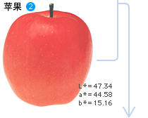 不論在何處只要用到顏色,最頭痛的問題就是細微的色差。 但是用了色彩色差計,即使細微的色差也可以用數字表達出來而且容易被人所理解。 讓我們用L*a*b*和L*C*h色空間來看一下兩個蘋果之間的色差。 用蘋果