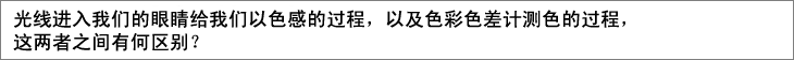 人眼可以看到在可見范圍內的光;但是,“光”和“顏色”并不是一回事。 光的定義為:“刺激眼睛視網膜的輻射線,并使眼睛產生視覺”。 對眼睛的刺激傳送到腦,在腦子里首先產生“顏色”這一概念,作為腦對接收來自眼睛的信息的反映。 在圖16中可以看到人感覺顏色的原理以及色彩色差計感受顏色的原理,兩者基本上是類似的。 在第I部分中討論過的色彩色差計所應用的方法稱之為三色刺激法;用這種方法設計出來的色彩色差計,以與人眼如何感覺光相等同的方法來測量光。 另外一種將在本節里解釋的測色方法稱之為分光光度分析法,使用這種方法的測色儀器用來測量光的光譜特性,然后根據CIE標準觀察者函數的方程式來計算三刺激值。 利用光譜光度分析法的儀器除了以各種色空間顯示數字數據之外還可以直接顯示光譜數據,提供有關該物體顏色的更為詳細的信息。 |