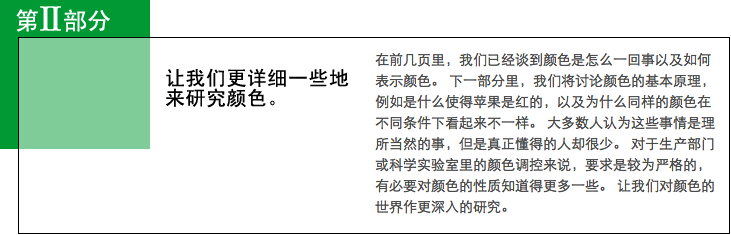 色彩和光的知識 為什么蘋果看起來是紅色的? 人們可以看到作為顏色的特定波長 光線進入我們的眼睛給我們以色感的過程,以及色彩色差計測色的過程,這兩者之間有何區別? 利用分光測色計來看光 (和顏色)的組成部分 用分光測色計測量各種顏色 三刺激法和光譜光度分析法的區別 當光源改變時為什么顏色會顯著地改變? 分光測色計甚至能處理復雜的條件等色現象問題 分光測色計的特點