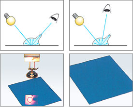 鏡面反射光和漫射光的含量是根據(jù)物體表面情況而定的。 但在材料和顏色一定的條件下,兩種光的總量總是一樣的。 因此,當(dāng)表面光滑的藍(lán)色塑料樣品被磨粗糙后,鏡面反射光含量減少了而漫射光含量增多了。 這就是為什么我們需要測量全部反射光(鏡面反射光與漫射光的和)。