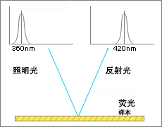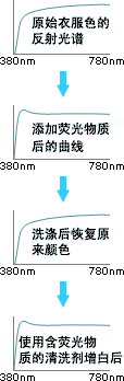 當你看到熒光色時,雖然色彩不是真正的光源,但會顯得它本身在發光一樣。 當光線射向熒光物質時,光線會被物質所吸收,再以光譜范圍內另一波長的可見光形式釋放,通常是比原來波長更大。 如第II部分2頁中提到的,可見光波長范圍是從380nm到780nm。 舉例來說,熒光物質吸收360nm波長的光線再以420nm波長的光線釋放,這樣,測量值中420nm這點波長的反射率或許會超過100%。 由于更多數量的光線變為可見光,因此人眼感覺就像物體本身在發光。 測量不含熒光的物質的樣品時,分光濾鏡位置可以在光源和樣品之間或樣品和接收器之間。 但在測量含有熒光物質的樣品時,為了符合人眼感觀視覺,分光濾鏡必須在樣品和接收器之間,只有這樣,才能使整個光源光譜照射在樣品上。 因此在用分光測色計測含熒光物質的樣品時,必須保證光源的光譜能量分布包含有紫外光范圍。