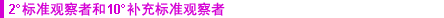 | 眼睛的色靈敏度隨著視角(物體大小)而變化。 CIE在1931年原來規定的標準觀察者是用2º視角,因此定名為2º標準觀察者。 1964年,CIE規定了一個附加的標準觀察者,這一次是根據10º的視角,因此被稱作10º補充標準觀察者。 2º視角和10º視角相比較,究竟是個什么概念,可以下例說明。在視距為50cm時,2º的視角為1.7厘米的圓;而在同樣視距10º的視角則為8.8厘米的圓。 在本書中大部分資料是根據2º標準觀察者。 2º標準觀察者將用于1º到4º視角,而10º補充標準觀察者將用于4º以上的視角。 | ![]() |
