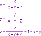 xyz色度坐標是由XYZ三刺激值按照下列公式計算得來: