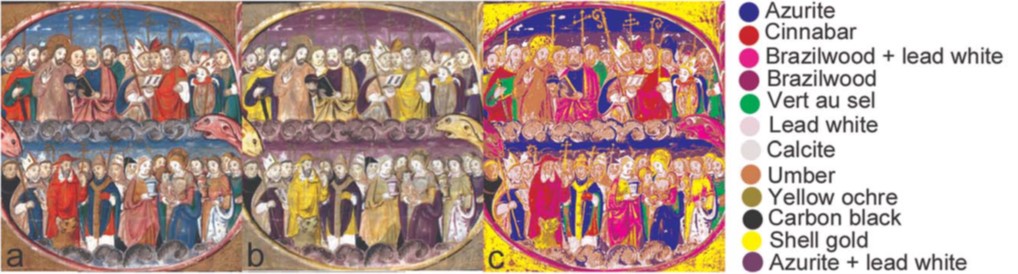由于高光譜影像不僅包含了目標的光譜特征還包含圖像特征和空間信息特征,在顏料鑒別中,高光譜影像不僅可以對未知顏料分類,還可以結合其他顏料鑒別技術的結果繪制全局性的顏料分布制圖。