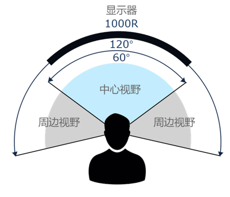 有研究表明,具有一定曲率的顯示器會(huì)對(duì)使用人產(chǎn)生積極的影響。如果水平曲率半徑高達(dá)1000mm(即1000R),可以減少眼球運(yùn)動(dòng),從而減少視覺(jué)疲勞——因?yàn)檫@種曲線更接近人類(lèi)視覺(jué)的自然曲率。