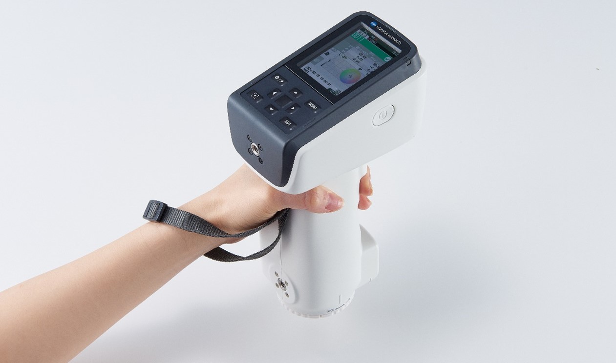 新款直立便攜式分光測色計CM-17d/16d,易于握持,非常適合小型樣品測量和曲面測量。