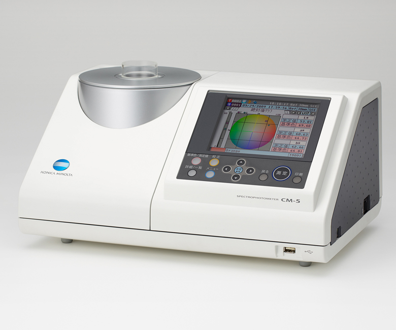 CM-5,是柯尼卡美能達推出的一款臺式分光測色計,它在保留了CM-3500d開口向上的設計基礎上,在儀器精度、功能和整體外觀上有了很大的提高,寬大的顯示屏操作使色彩測量成為一種享受。CR-5是CM-5的簡易版,僅保留常用的C光源和D65光源,同時去除光譜圖的顯示,但依舊提供絕對值圖。