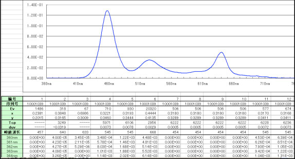Table 2. Tested results for ten LED white light samples
