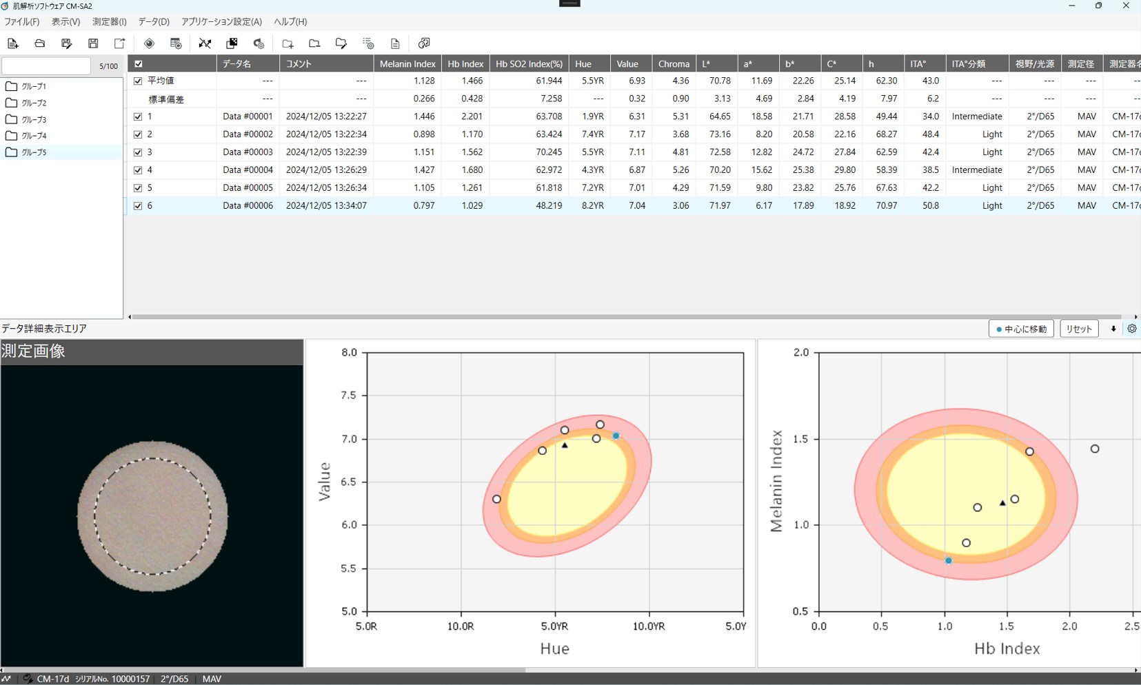 使用CM-17d時,可以在確認(rèn)測量位置的同時避開皮膚上的斑點(diǎn)、痣等,從而進(jìn)一步提升測量數(shù)據(jù)的準(zhǔn)確性。此外,CM-SA2還可以將測量時保存的圖像與數(shù)據(jù)相關(guān)聯(lián),后續(xù)可以通過圖像確認(rèn)測量位置。