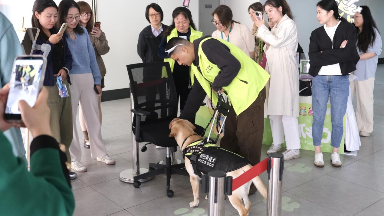 開心和凱莉的到來,瞬間成為全場的焦點。它們溫順的性格和專業的工作狀態,生動地詮釋了導盲犬作為視障人士“眼睛”的重要意義。現場愛心人士紛紛與它們親密互動,定格下無數溫暖瞬間。