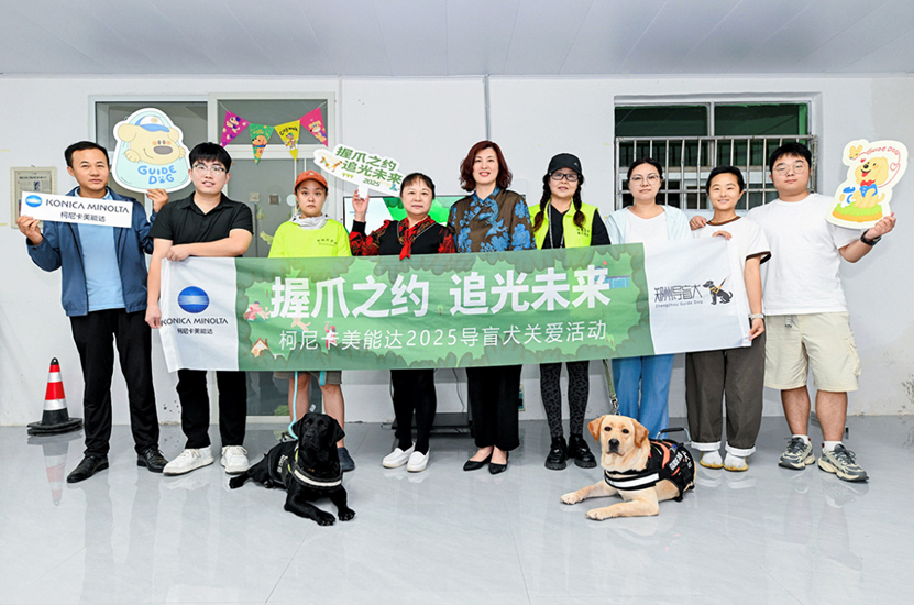 2025年,柯尼卡美能達再次逐光而行,傳遞溫暖力量,專程前往鄭州愛心導盲犬服務中心,為其捐贈了專項基金及犬用物資,以支持中心的日常運營與犬只訓練,助力培養更多優秀的導盲犬,進而為視障人士的生活帶來便利與溫暖。除了捐贈資金及物資外,柯尼卡美能達還延續往年活動傳統,圍繞“導盲犬”設計了一系列周邊紀念品,包括行李箱飄帶、午睡毯、襪子、冰箱貼、擦手巾等。這些紀念品后續將提供給各大導盲犬基地進行義賣籌款。
