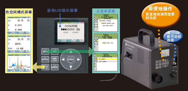 | 色空間模式 | Lv x y,Lv u' v',Lv TΔuv,XYZ,光譜曲線,特征波長,激發(fā)純度,暗視覺亮度(使用CS-S10w專業(yè)軟件) | ||