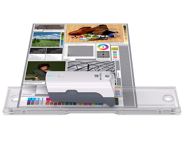 由于柯尼卡美能達VFS技術(虛擬熒光標準)在FD-7推出時獲得專利,MYIRO-1可以通過一次掃描測量M1、M0和M2,符合ISO13655:2017測量標準。甚至可以導入非標準化的光譜,并作為定制的光照條件*使用。由于MYIRO-1支持雙向掃描色塊,用戶在用尺子測量線性化、仿形和控制楔時的體驗也將得到改善,這得益于掃描方向的智能檢測。