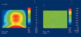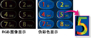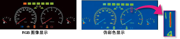 * 屏幕顯示測量不均勻線條畫面時的偽彩色顯示(左)和增強不均勻顯示(右)示例。