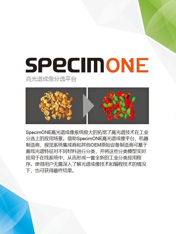 SpecimONE高光譜成像平臺(tái),使高光譜成像技術(shù)更便利、更快捷地與分揀機(jī)相結(jié)合。產(chǎn)品應(yīng)用于廣泛的工業(yè)領(lǐng)域,包括顏色測(cè)量、分選回收、食品分揀和質(zhì)量評(píng)估、藥品質(zhì)量分析、地質(zhì)勘探、環(huán)境監(jiān)測(cè)、農(nóng)業(yè)和植被監(jiān)測(cè)、過程分析技術(shù)(PAT)、生命科學(xué)和許多其他化學(xué)成像領(lǐng)域。