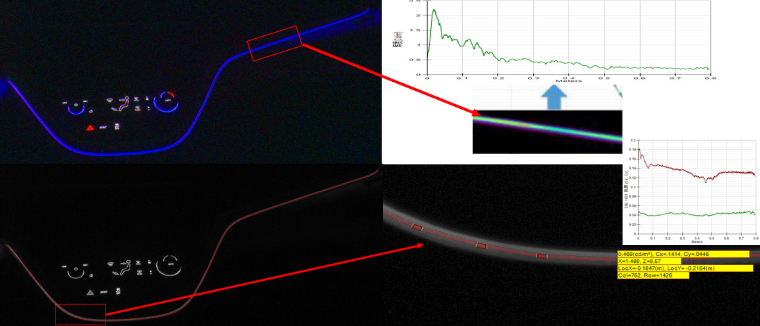汽車氛圍燈分光式與成像式光學(xué)測量組合方案 |