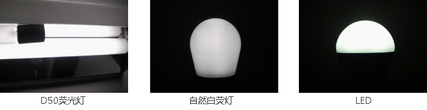 這里,我們分別用高顯色性的D50熒光燈、帶有"自然白"標(biāo)志的熒光燈和LED三個(gè)光源照明物體。