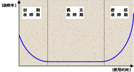 如上圖所示,故障發(fā)生的比率(故障率)一般分為3個時期。
