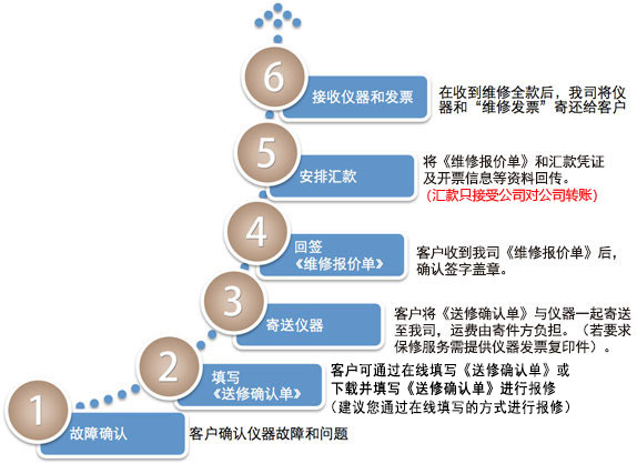 儀器送修前請閱讀和填寫《送修確認單》,并且隨儀器寄送到我司的維修中心。