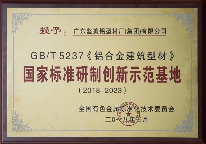 證書名稱: GBT5237鋁合金建筑型材國家標準研制創新示范基地(2018-2023)
