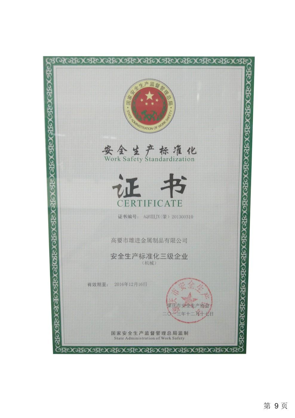 證書名稱: 安全生產標準化證書