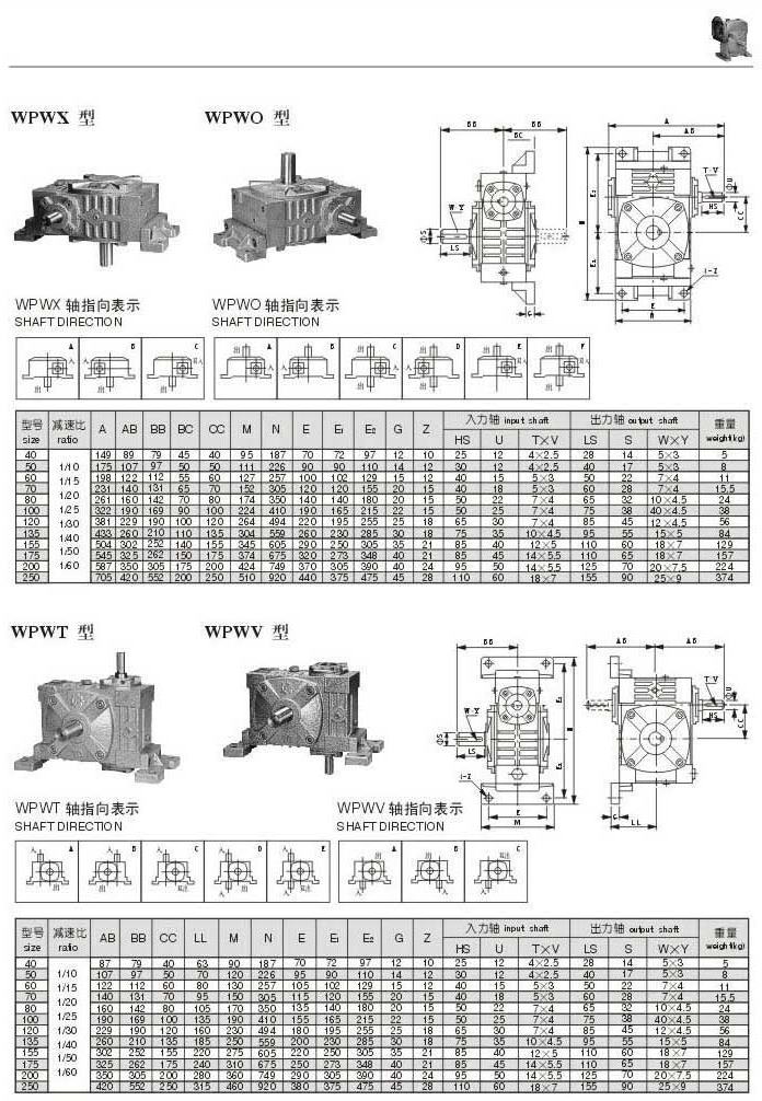 WPWX, WPWO,WPWT,WPWV型型號參數圖表