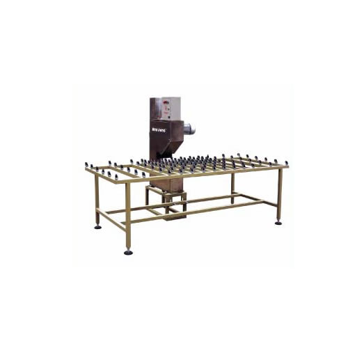 1.本機工作臺面采用風機——小孔形成氣墊,可懸浮玻璃,移動定位方便。