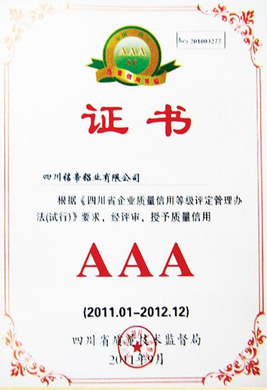 證書名稱: 質量信用AAA級證書