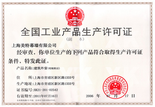 證書類型: 鋁合金窗生產許可證