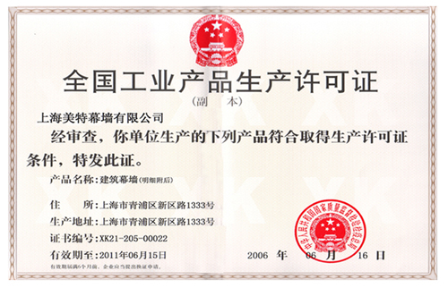 證書名稱: 生產許可證(建筑幕墻)