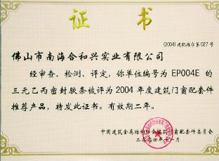 證書名稱: 2004年度建筑門窗建筑門窗配套件推薦產品