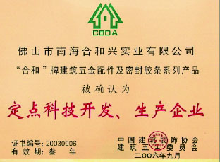 證書名稱: 2006年度建筑門窗建筑門窗配套件推薦產品