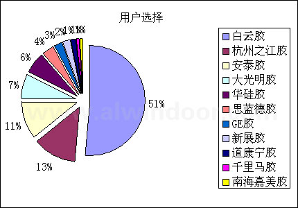 中國幕墻網(wǎng)大型讀者調(diào)查活動,已于2005年3月13日圓滿結(jié)束。通過開展此次調(diào)查活動,不僅增進(jìn)了中國幕墻網(wǎng)對行業(yè)讀者群的了解,同時,借助對選票的統(tǒng)計分析,產(chǎn)生了行業(yè)內(nèi)包括“密封膠”、“玻璃”、“型材”、“設(shè)備”四個類別的市場占有及讀者首選排名情況。市場表現(xiàn):來源于調(diào)查參與者所正在使用的產(chǎn)品品牌,間接反映市場中該產(chǎn)品的市場占有率;用戶選擇:來源于調(diào)查參與者所喜愛或贊同的產(chǎn)品品牌,間接反映市場中該產(chǎn)品的品牌影響力和用戶認(rèn)同度。