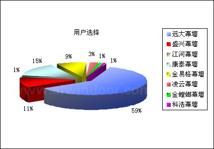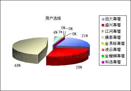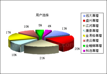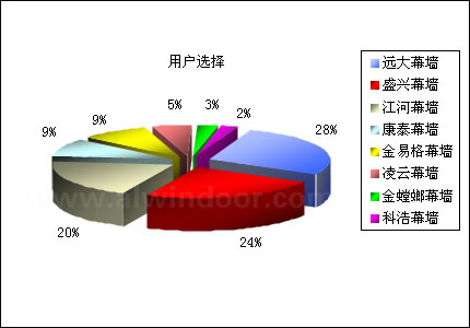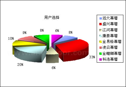 中國幕墻網大型讀者調查活動,已于2006年3月10日圓滿結束。通過開展此次調查活動,不僅增進了中國幕墻網對行業讀者群的了解,同時,借助對選票的統計分析,產生了行業內包括“密封膠”、“玻璃”、“型材”、“設備”、“幕墻”、“配套件”六個類別的市場占有及讀者首選排名情況。市場表現:來源于調查參與者所正在使用的產品品牌,間接反映市場中該產品的市場占有率;用戶選擇:來源于調查參與者所喜愛或贊同的產品品牌,間接反映市場中該產品的品牌影響力和用戶認同度。